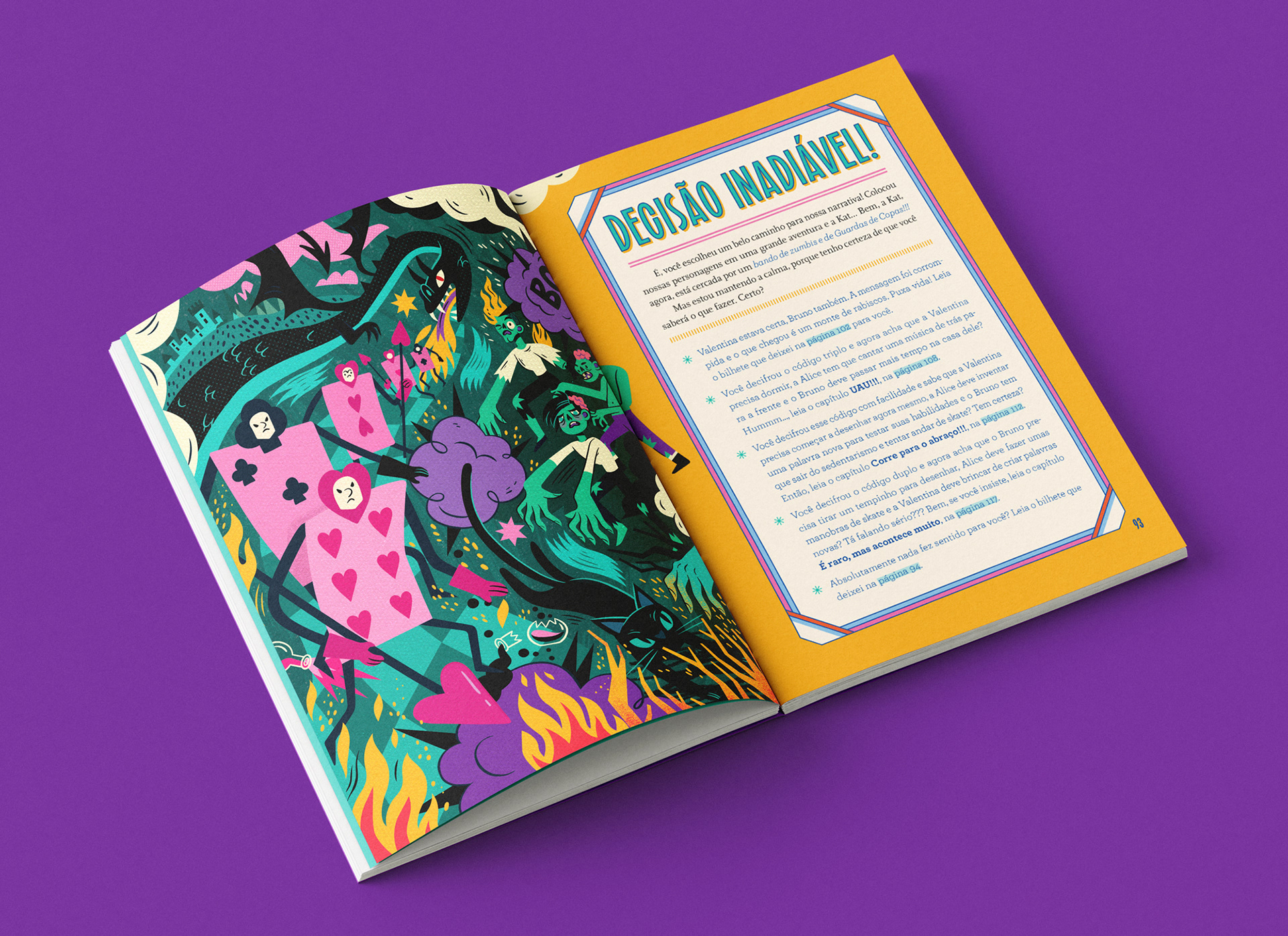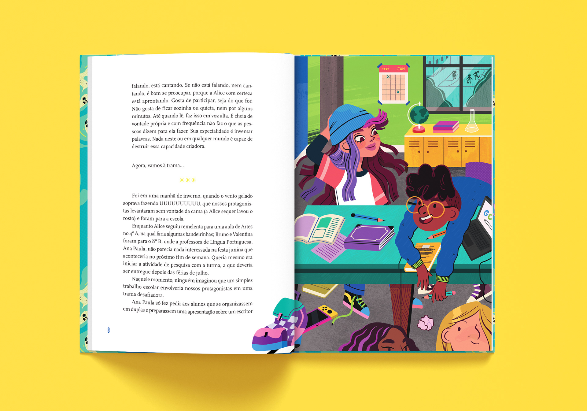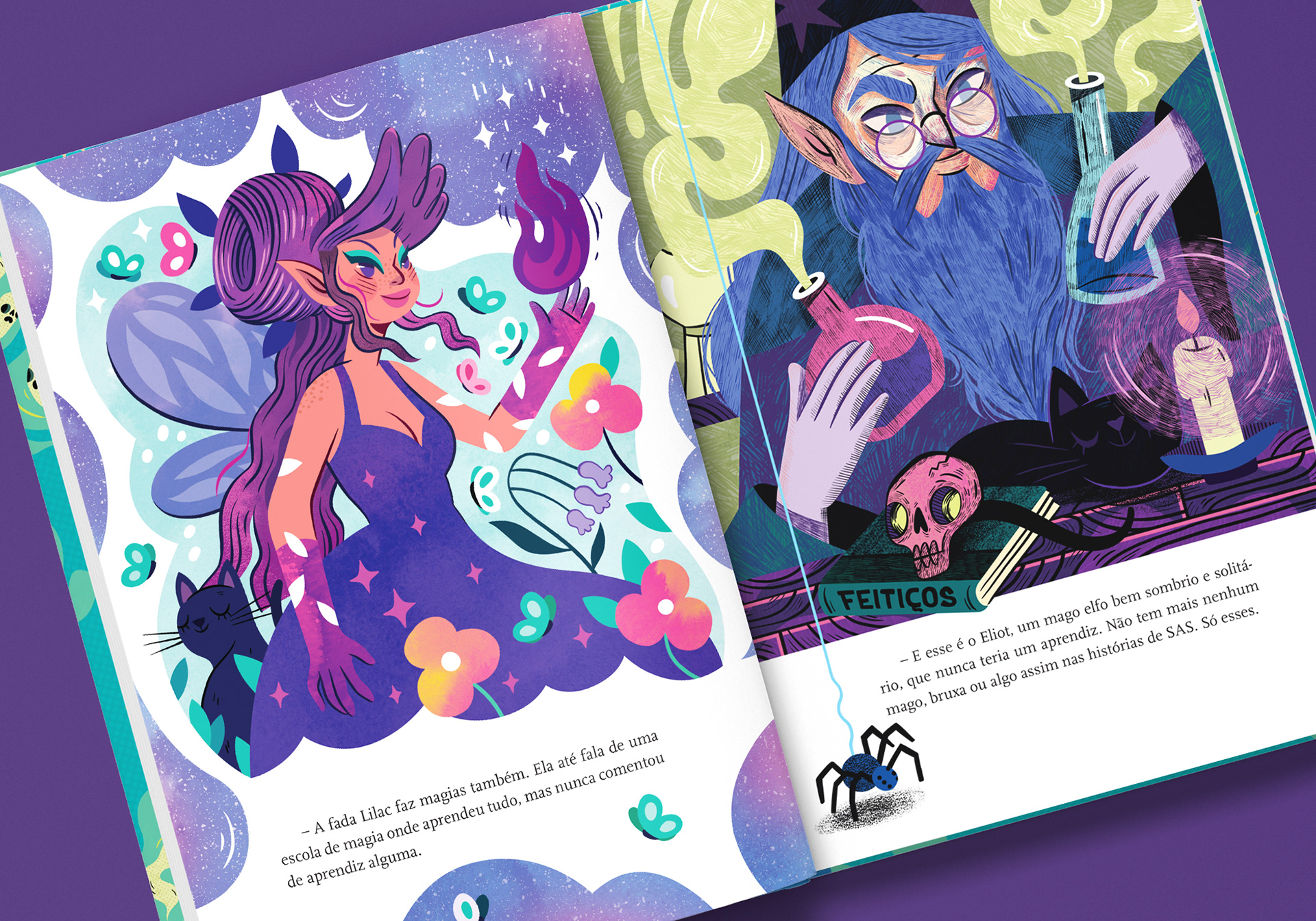 ENG In this project, I was responsible for the cover illustration, original title lettering, illustrated endpapers, and all internal illustrations, as well as the visual design of the narrative characters. I sought to bring to life a vibrant, fun, and accessible universe that would support reading with visual clues and reinforce the playful aspect of exploration - a balance between aesthetics, clarity, and an investigative spirit. One of the most special and rewarding projects I've had the opportunity to illustrate.