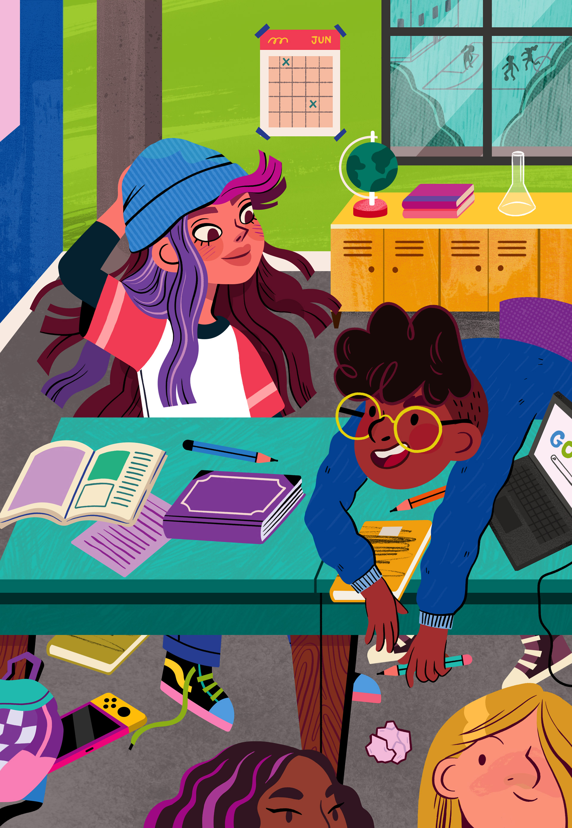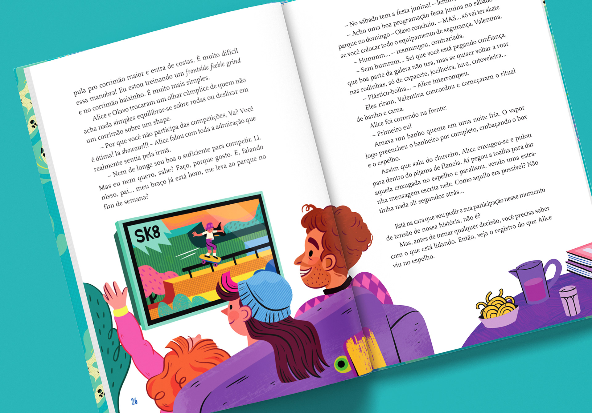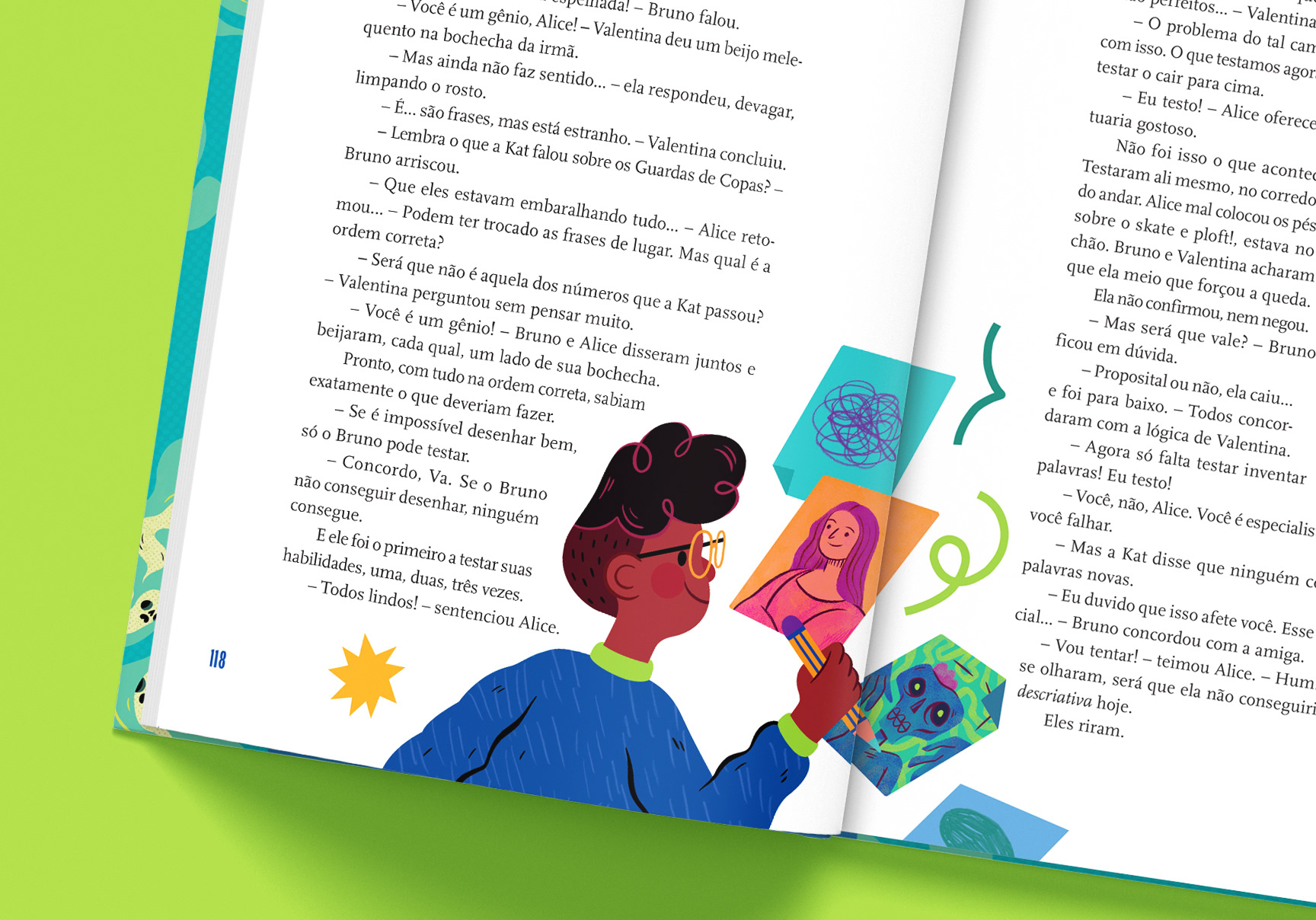 ENG In this project, I was responsible for the cover illustration, original title lettering, illustrated endpapers, and all internal illustrations, as well as the visual design of the narrative characters. I sought to bring to life a vibrant, fun, and accessible universe that would support reading with visual clues and reinforce the playful aspect of exploration - a balance between aesthetics, clarity, and an investigative spirit. One of the most special and rewarding projects I've had the opportunity to illustrate.