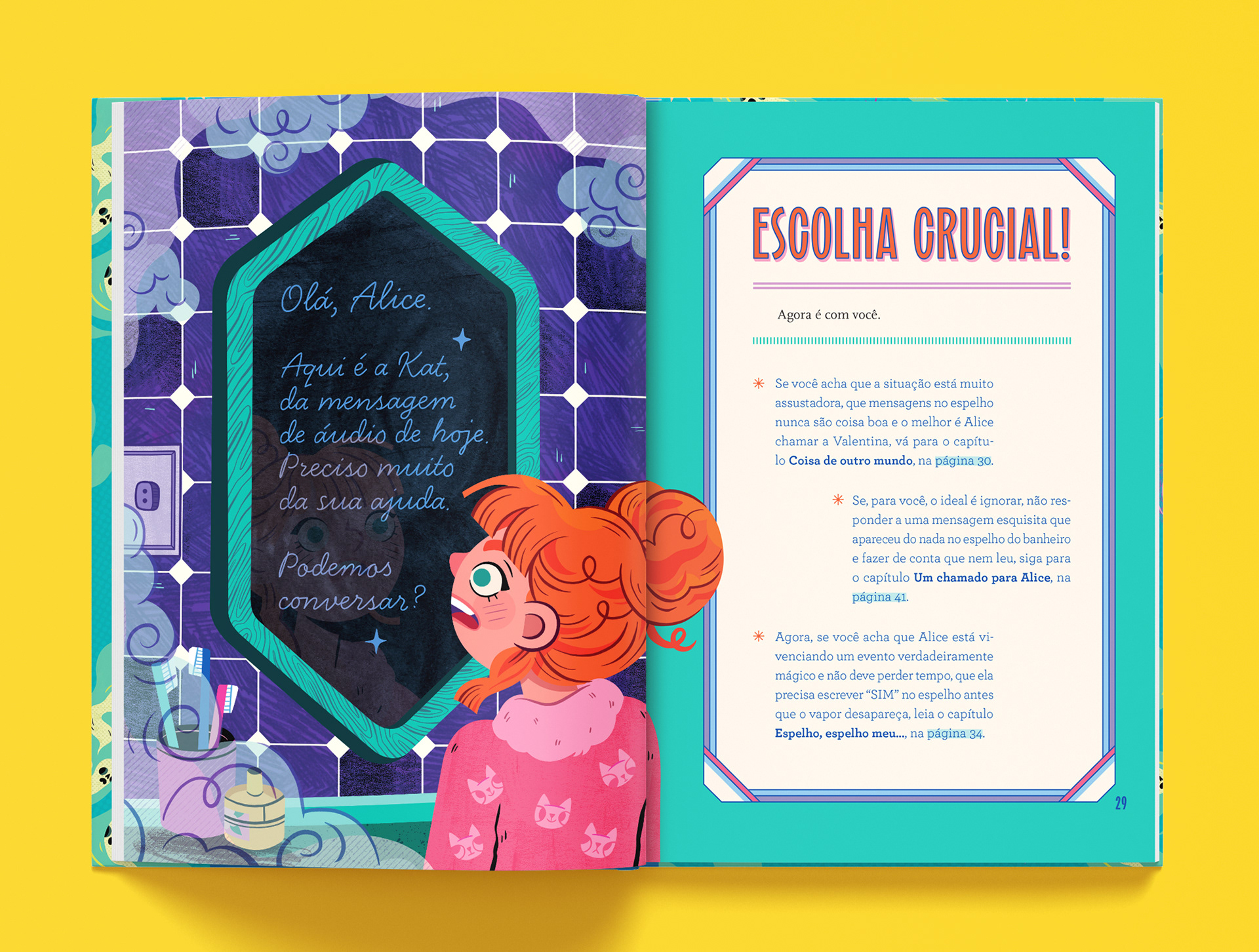 [ENG] Leiturinha is the largest children's book subscription club in Brazil, with over 170,000 readers nationwide. The company is part of the PlayKids Family, a global leader in children's educational content, with the purpose of teaching through fun to build a better world. "Um Mistério para Você" is an original Leiturinha book, sent to club subscribers and also available in the brand's online store. The work is a Game-Book that invites readers aged 10+ on an interactive journey, combining literary narrative, challenges, and multiple possible paths: each choice alters the course of the story.