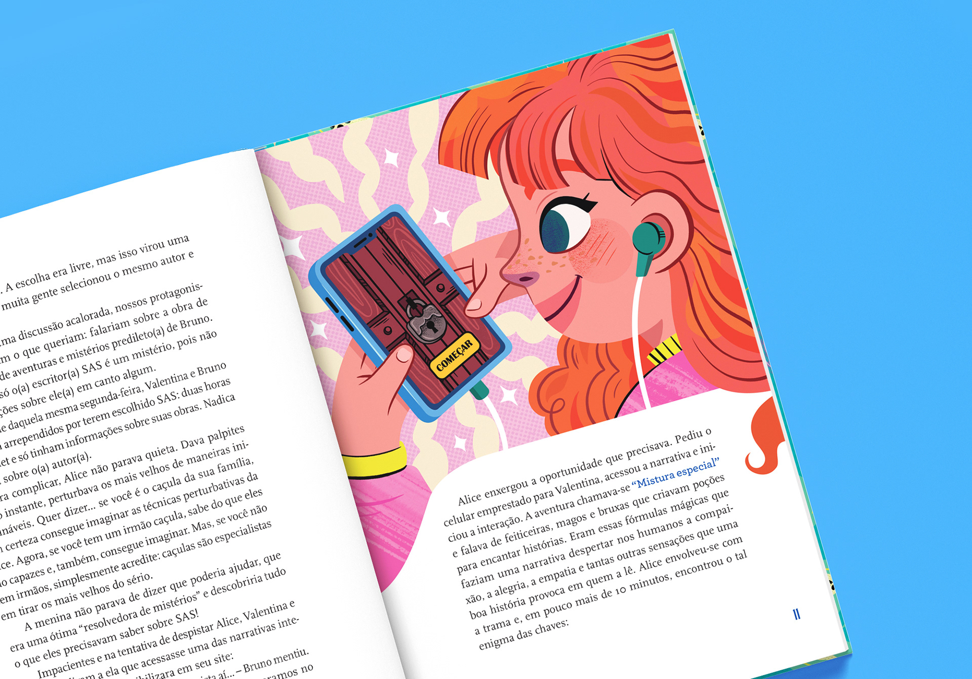 PT-BR Neste projeto, fui responsável pela ilustração de capa, lettering original do título, guardas ilustradas e por todas as ilustrações internas, além da construção visual dos personagens da narrativa. Busquei dar vida a um universo vibrante, divertido e acessível, que apoiasse a leitura com pistas visuais e reforçasse o aspecto lúdico da exploração - um equilíbrio entre estética, clareza e espírito investigativo. Um dos projetos mais especiais e gratificantes que tive a oportunidade de ilustrar.