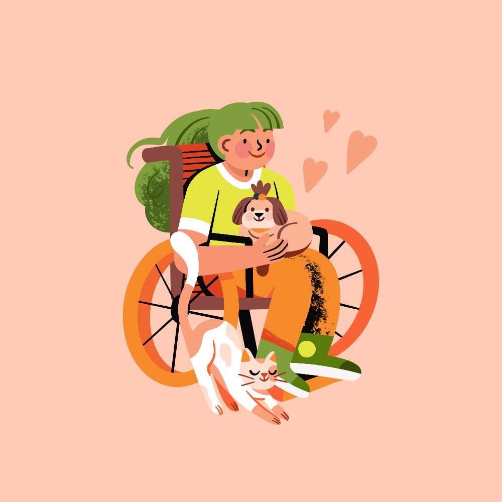 PT-BR A convite da MOL Impacto, tive o prazer de colaborar como uma das artistas convidadas a ilustrar o livro Vitamina P (de Pets!), criado em parceria com Alexandre Rossi - o Dr. Pet, veterinário especialista em comportamento animal. Desenvolvi as ilustrações de cinco duplas de páginas, complementando o conteúdo informativo de temas como cuidado, afeto, responsabilidade e a relação entre pessoas e seus animais de estimação. A publicação em parceria com a RD Saúde (Raia + Drogasil), uma das maiores redes de farmácias do Brasil, é um produto social que destina todo o lucro das vendas para mais de vinte ONGs de todas as regiões do país, que trabalham pelo direito universal à saúde, educação, bem-estar, proteção aos animais e preservação do meio ambiente.