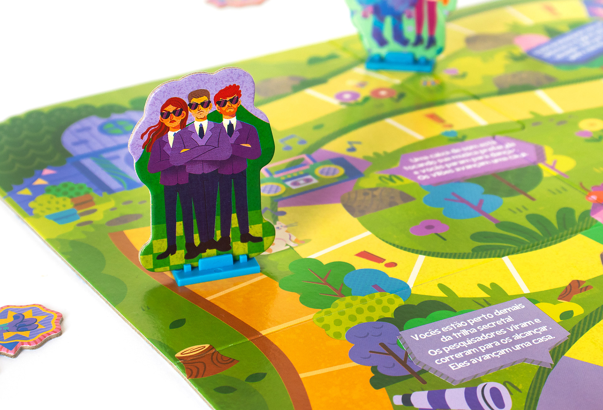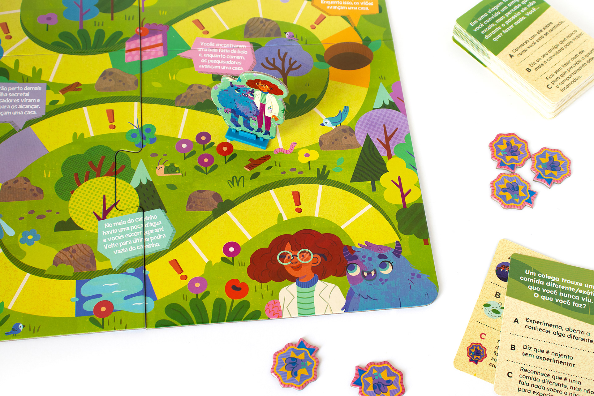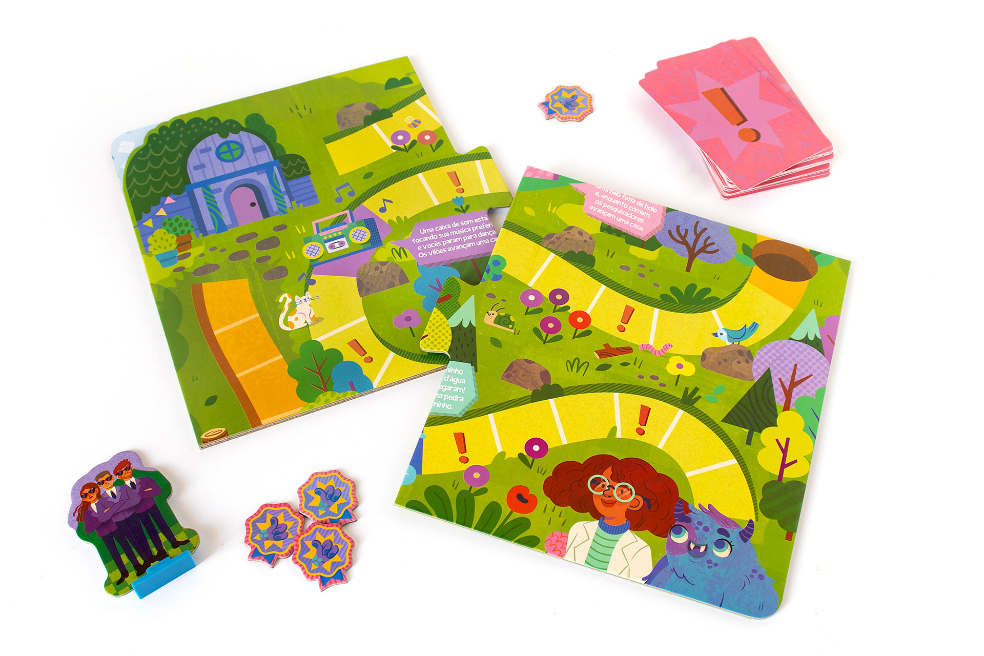 PT-BR Fui convidada pela Toyster Brinquedos para criar as ilustrações originais do Jogo Ser Social, board game educativo para crianças a partir de 6 anos. O desafio do game é ajudar a cientista Sofia e o monstrinho Lup a chegarem em casa antes que pesquisadores malvados os alcancem, percorrendo as casas do tabuleiro em uma trilha específica. Essa jornada divertida estimula os pequenos a desenvolverem suas habilidades sociais e aprenderem brincando. Nesse projeto, desenvolvi a arte para o tabuleiro, design dos personagens (cientista, monstrinho e vilões), roleta e fichas de recompensa, seguindo o briefing disponibilizado pelo time.