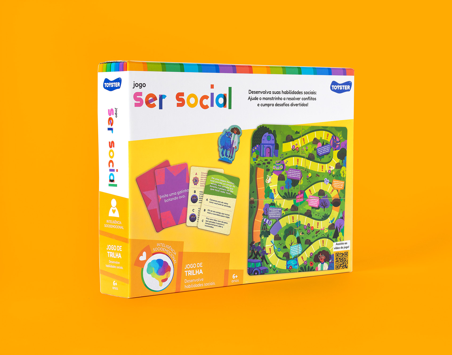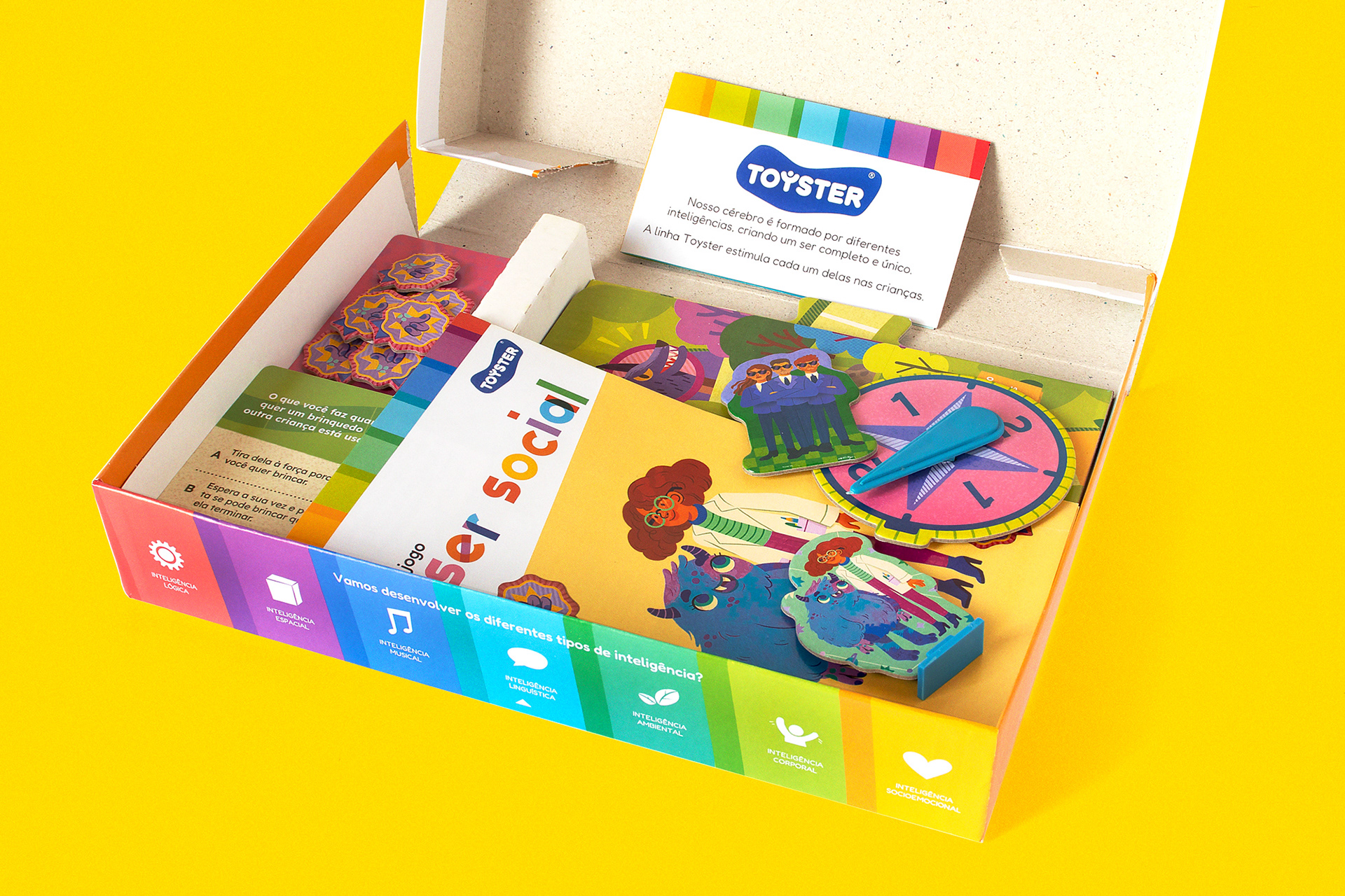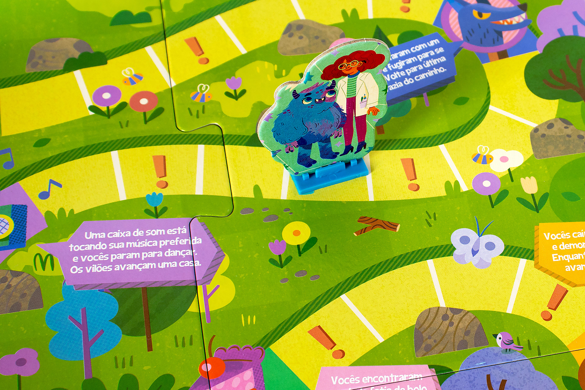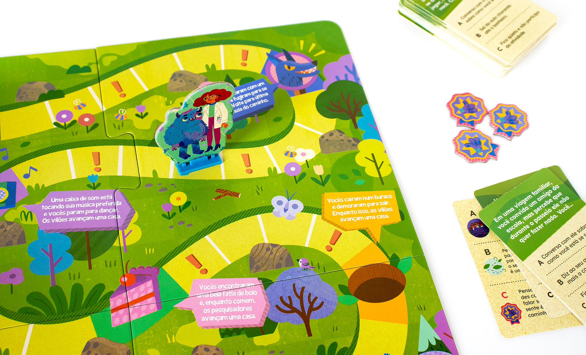 PT-BR Fui convidada pela Toyster Brinquedos para criar as ilustrações originais do Jogo Ser Social, board game educativo para crianças a partir de 6 anos. O desafio do game é ajudar a cientista Sofia e o monstrinho Lup a chegarem em casa antes que pesquisadores malvados os alcancem, percorrendo as casas do tabuleiro em uma trilha específica. Essa jornada divertida estimula os pequenos a desenvolverem suas habilidades sociais e aprenderem brincando. Nesse projeto, desenvolvi a arte para o tabuleiro, design dos personagens (cientista, monstrinho e vilões), roleta e fichas de recompensa, seguindo o briefing disponibilizado pelo time.